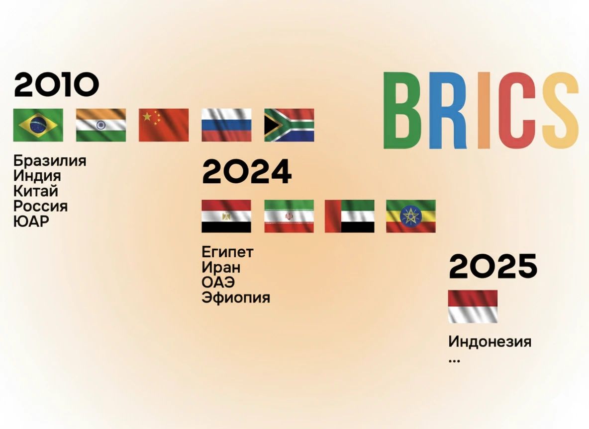И отсутствие постоянно действующего органа управления, который бы координировал работу объединения, не помешало БРИКС вырасти из «пятерки» в «десятку» — с 1 января 2024 года Египет, ОАЭ, Эфиопия и Иран стали полноправными членами БРИКС, а Саудовская Аравия была приглашена, но по состоянию на 2025 год всё ещё рассматривает вступление. Это решение, кстати, формально утверждается консенсусом, но не было полностью единогласным из-за разногласий в подходах, о чем мы расскажем дальше.
