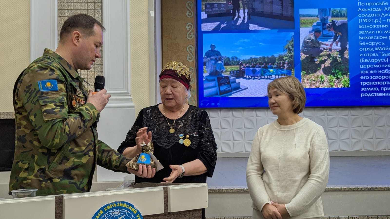 Особое место в программе заняла трогательная церемония «Передача земли». По просьбе родственников красноармейца Джайбосенова Рахмана поисковики «Майдан жолы» установили место его гибели, уточнили данные и привезли горсть земли с братской могилы. Передача этой земли внучке героя, Кенжебаевой Акылзаде Айтжановне, стала символом неразрывной связи поколений, сыновнего долга и вечной памяти о павших воинах.