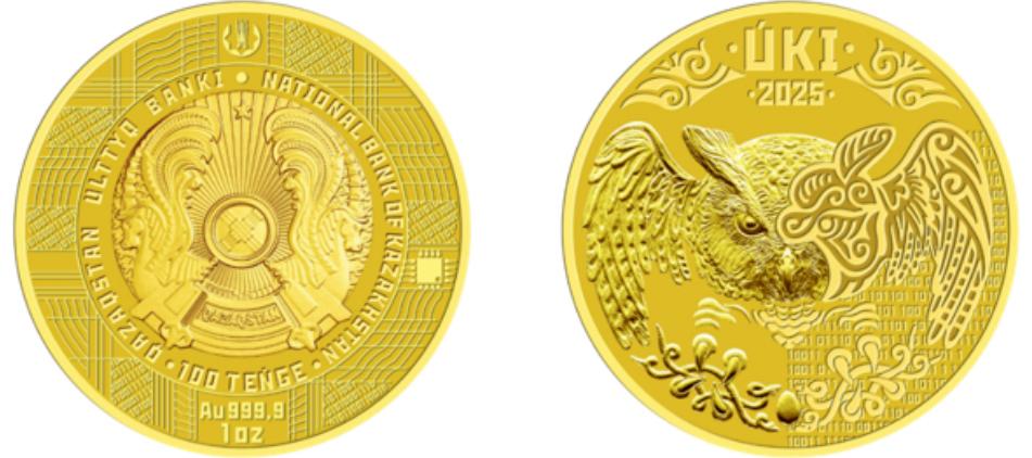 С 17 марта выпущена в обращение и доступна к покупке инвестиционная монета ÚKI из золота Au 999,9 номиналом 100 тенге, весом 31,1 грамм/1 тройская унция. К ней привязан инвестиционный инструмент в рамках проекта «Gold Coin» – цифрового эквивалента инвестиционной монеты.