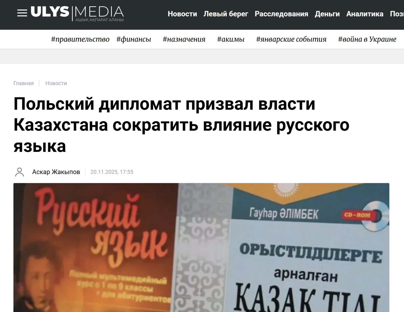 И там же в материале: «Автор трехтомника «Ситуативный казахский», создатель разговорных клубов «Мәміле» Канат Тасибеков констатирует, что сегодня подрастающее поколение зачастую погружено в русскоязычное медиапространство: мультфильмы, сериалы, песни».
