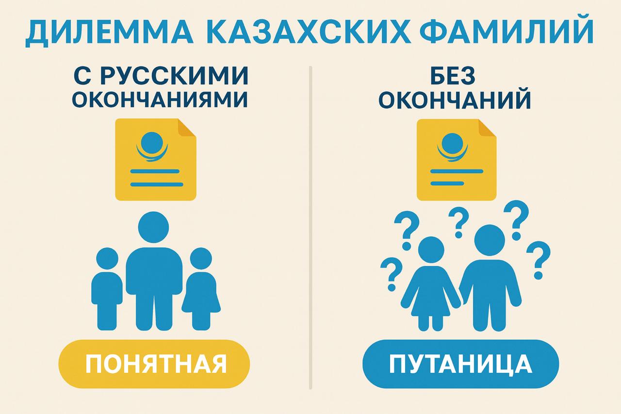Русские окончания в казахских фамилиях уже стали частью местной языковой традиции, сформировавшейся за более чем столетие. Их механическое удаление без создания альтернативной системы идентификации неизбежно ведет к функциональным проблемам.