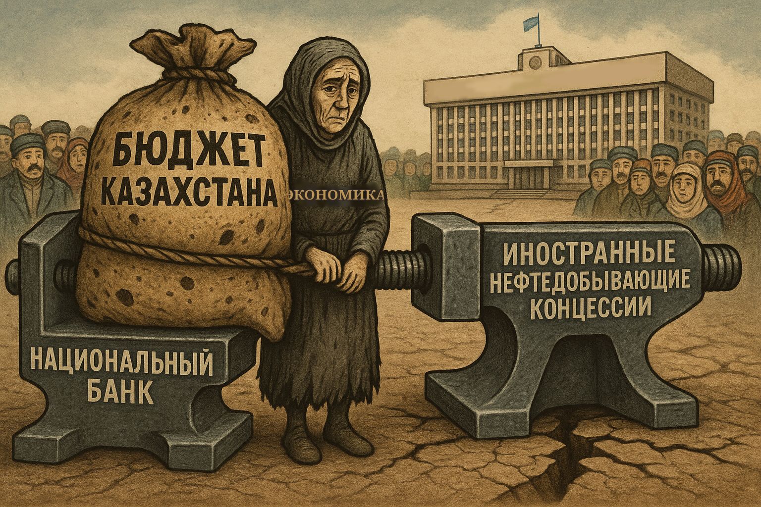 Бюджет Казахстана, вместе со всей не работающей на экспорт внутренней экономикой, самым безжалостным образом зажат в колониальные тиски между иностранными нефтедобывающими концессиями, не делящимися прибылью со страной пребывания и собственным Национальным банком, блокирующим национальный кредит и национальные инвестиции, чтобы обеспечивать «зеленый свет» внешнему кредитованию и инвестированию.